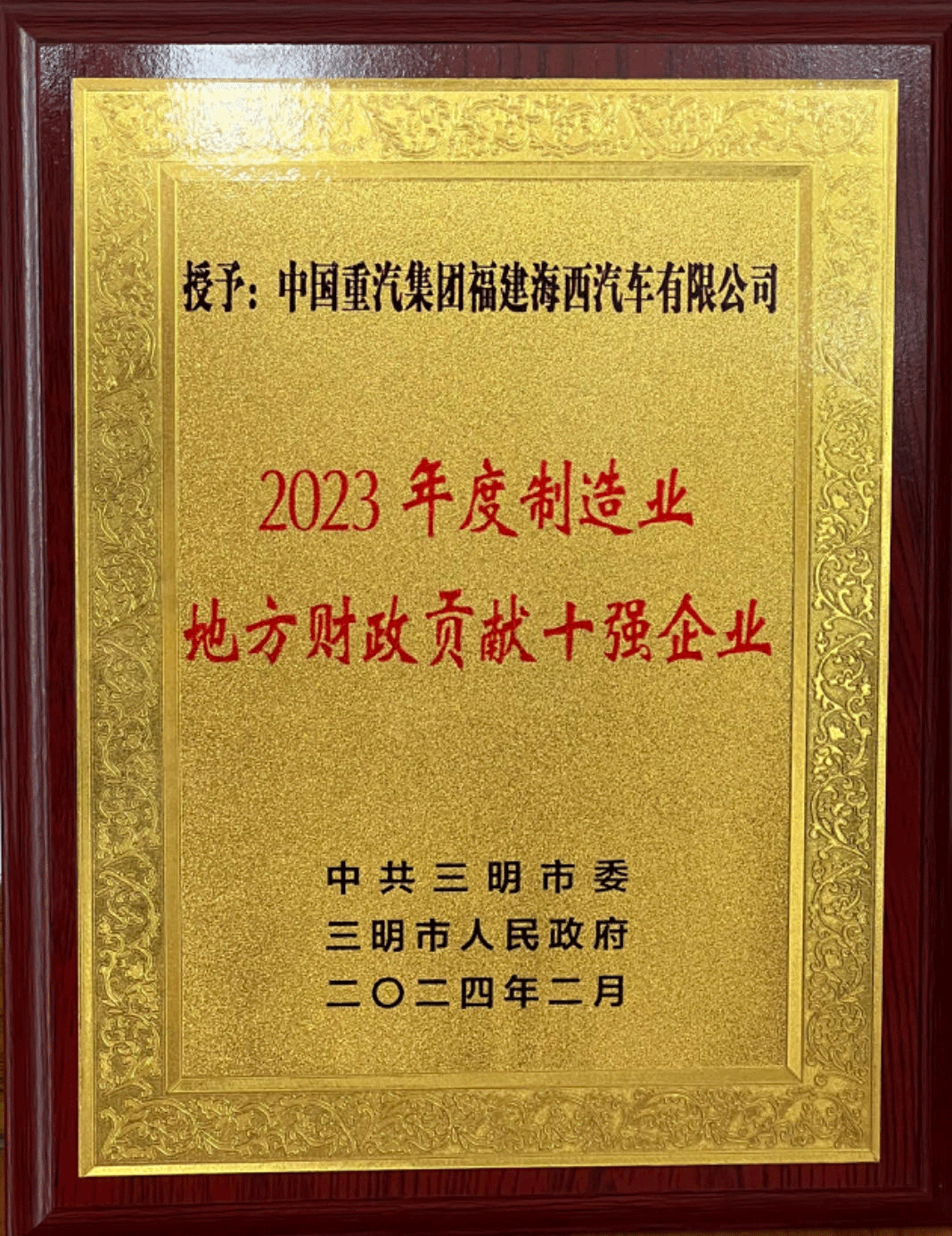 三明市“2023年度制造业地方财政贡献十强企业”