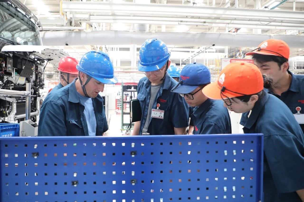??现场支持:每日召开现场调度会,集中处理生产异常问题,实现不同车型订单均衡生产,目前,公司双班产量稳定在250辆份,产能纪录持续刷新。
